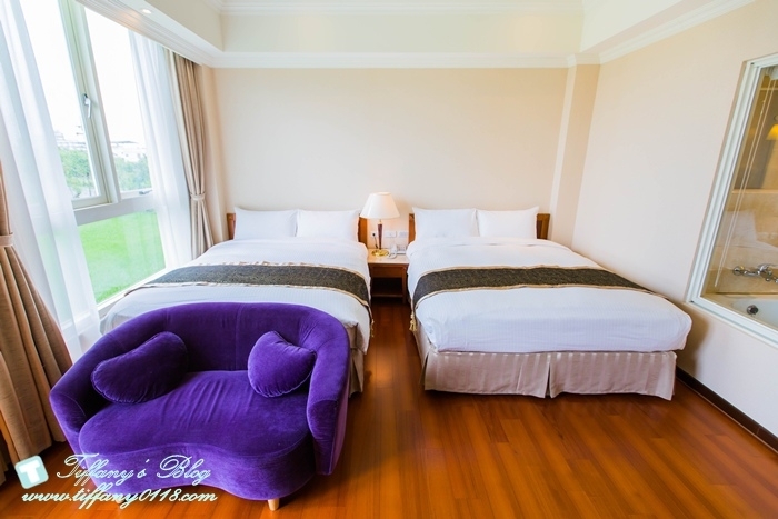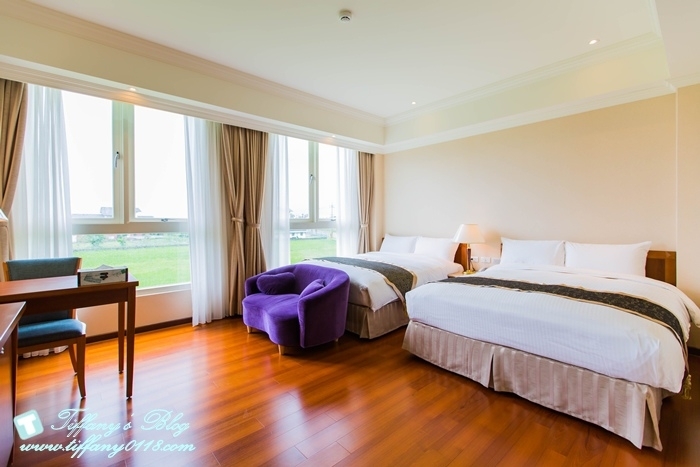 舒適的兩張大雙人床,還有書桌可以讓你順便工作,重點是視野很好,房間採光也很明亮
