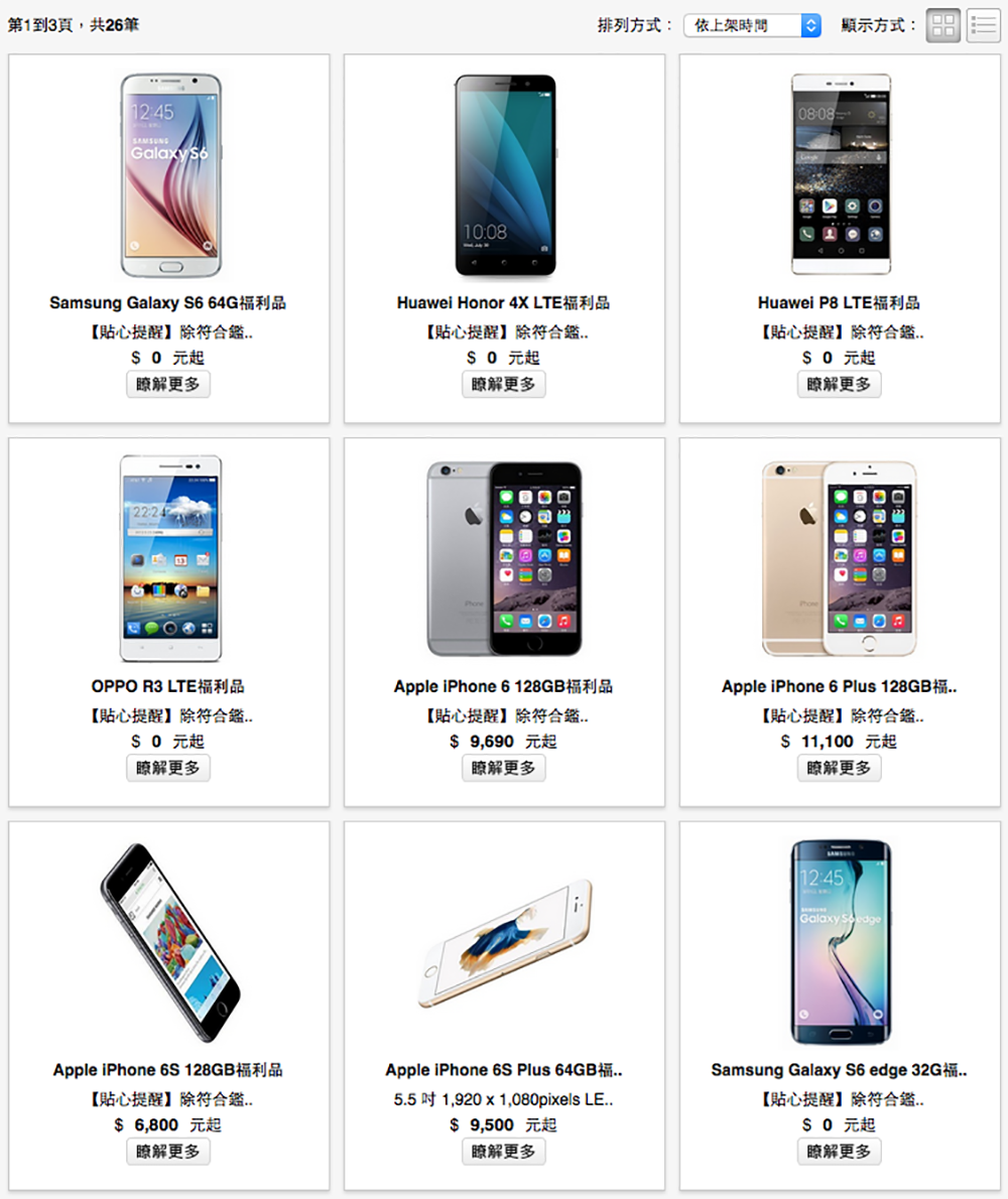 在聊遠傳網路門市的拆封機活動之前,有的同事都會上網去找找看手機或平板的「福利品」,當然這跟二手機又不太一樣,通常是整新機、展示拆封機或只是過期的庫存商品,對於小資族來說都是撿便宜的好機會,因為價格比新品便宜太多了!遠傳電信除了在站前暢貨中心有在賣福利品之外,在網路門市也有規劃了「福利品專區」,厲害的是除了比二手機有保障外,還提供了綁約服務讓買手機更優惠呢!