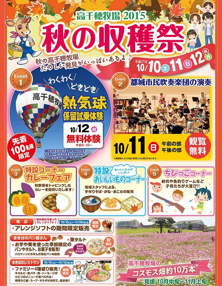 高千穗牧場:宮崎県都城市吉之元町5265番地103,電話:0986-33-2102,開館時間:4月〜10月9:00~17:3011月〜3月9:00~17:00