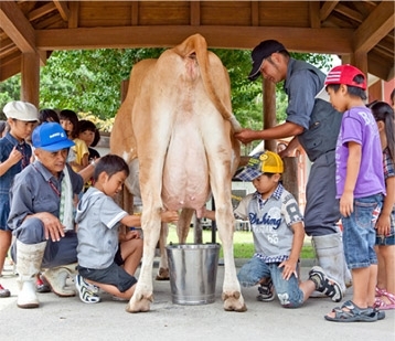除此之外假日、人多時,牧場內會為小朋友安排擠牛乳的體驗。