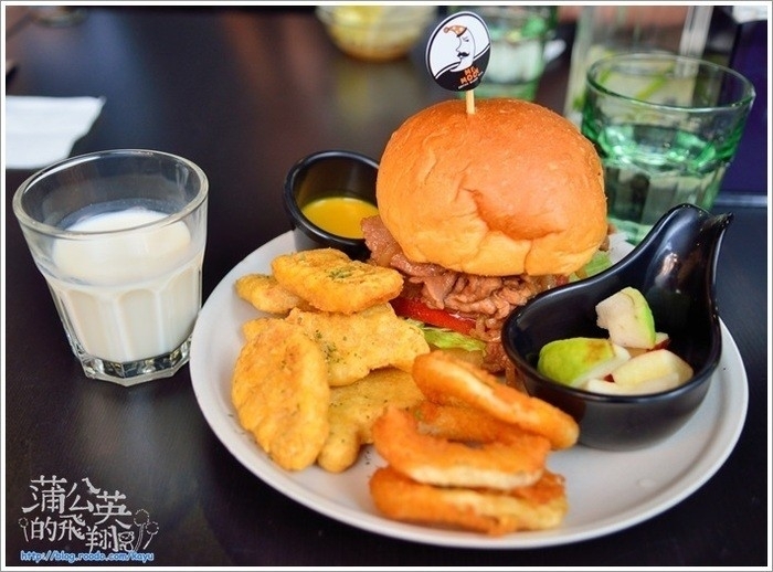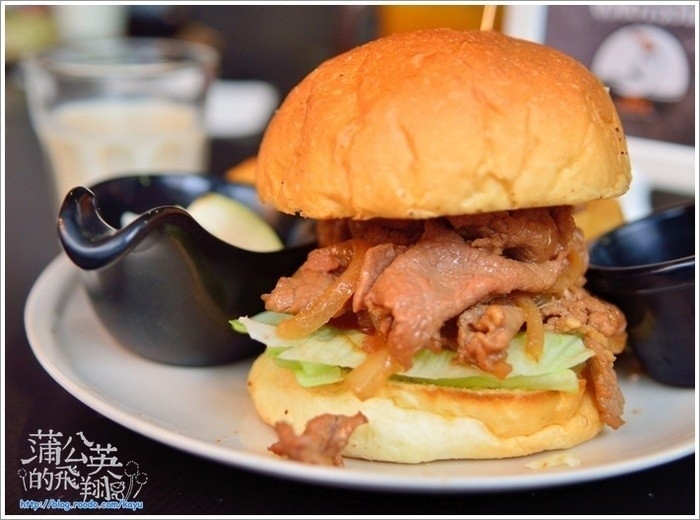 加了洋蔥去炒的牛肉片看起來很軟嫩,肉汁醬汁還閃閃發亮,漢堡不方便分食,所以由K同事負責,他表示:牛肉很軟嫩、有入味。單獨吃牛肉或搭配漢堡麵包、生菜一起吃,味道都挺不錯,份量夠多,對食量不大的人來說有點小撐。