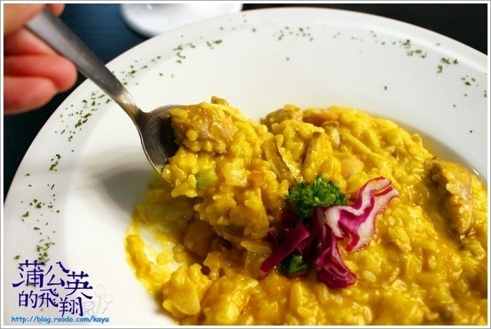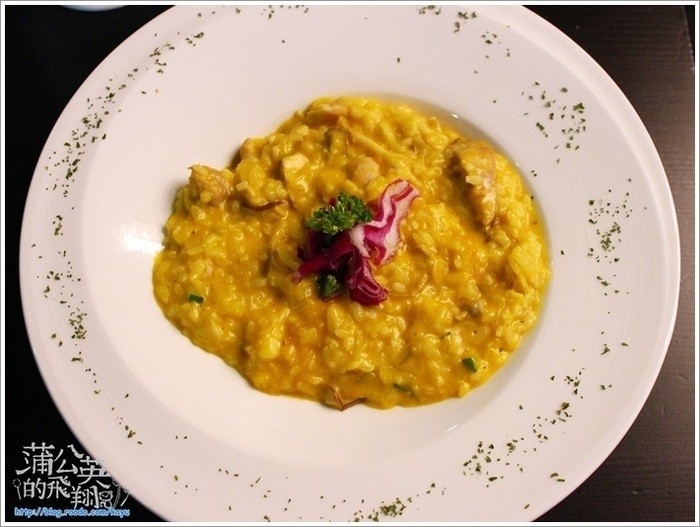 應是以奶油白醬為基底再加入南瓜熬煮,味道濃郁,和上一道墨西哥辣醬義大利麵是完全不同的味道。拌在飯裡的配料相當多,很難挖到一口是只有飯的燉飯。飯很入味,但軟硬度偏軟,如果希望吃到有顆粒口感的朋友,不妨提醒一下店家。
