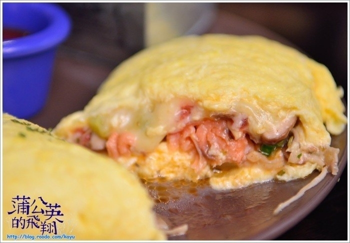 『月亮先生』的蛋捲很大一個,用了至少三顆蛋吧!?歐姆蛋不是全熟蛋,而且有點厚度,吃起來十分軟嫩,第一次選捲了燻鮭魚的蛋捲,燻鮭魚沒有被歐姆蛋熱熟了,吃起來還是軟軟的,所以跟歐姆蛋有融為一體的感覺。這道歐姆蛋捲的軟嫩口感獲得同事們的讚賞!