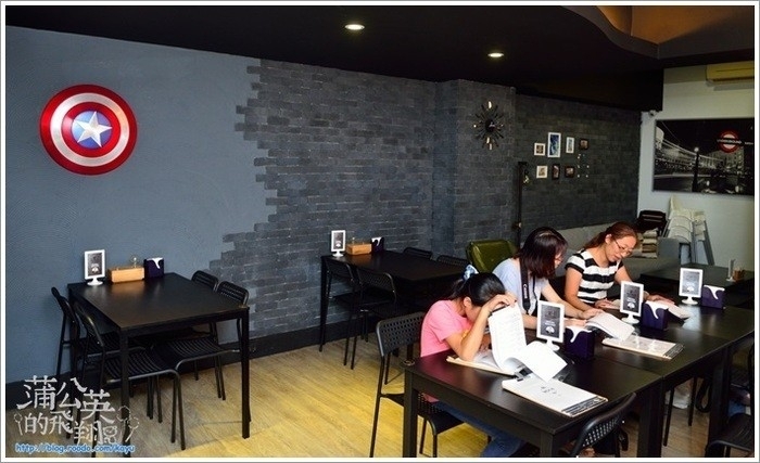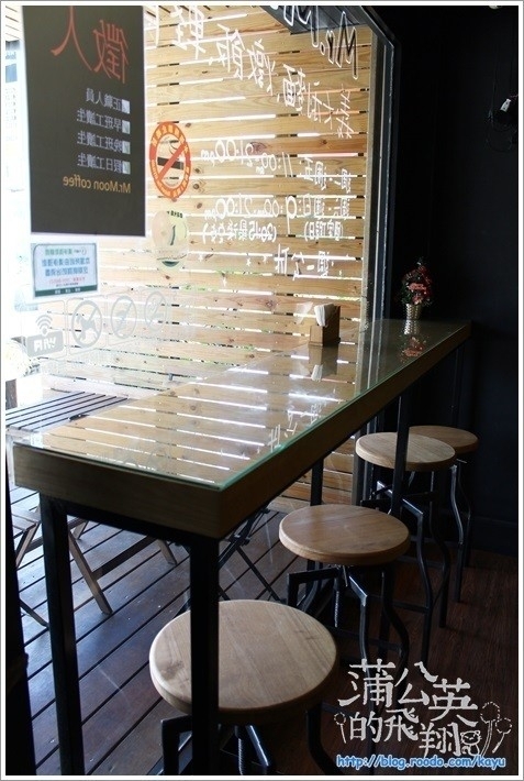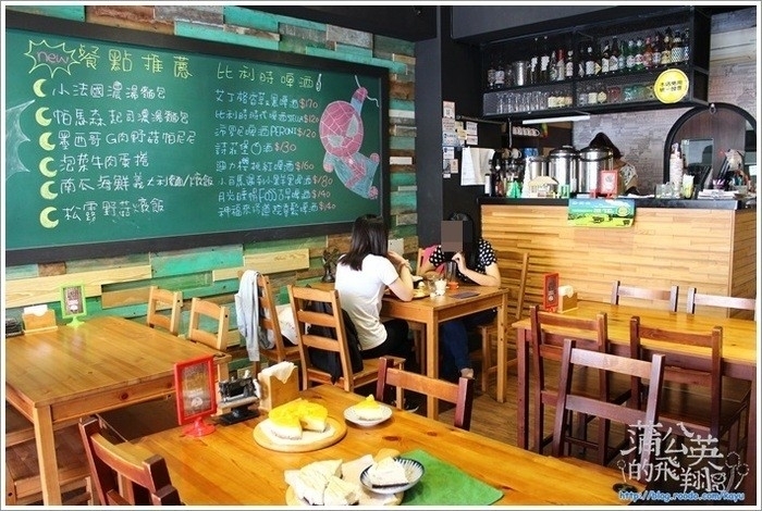 木桌椅、木櫃台、木地板、木板牆還有黑板,再稍微搭配些黑色鐵架,1樓空間明亮,裝潢走鄉村風,有小木屋或森林教室的感覺(有黑板嘛!)。