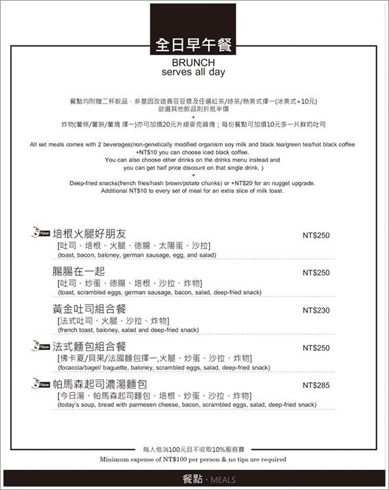 全部餐點全日供應;平日用餐不限時,假日限時2小時