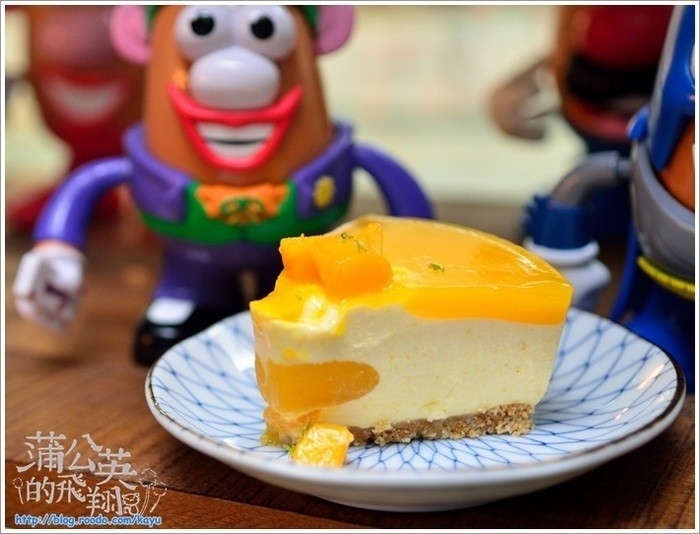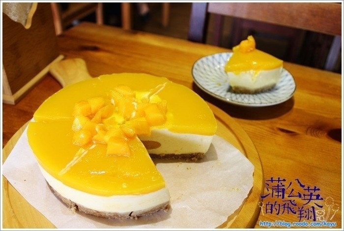 (哇!有芒果生乳酪蛋糕耶!我們看到好興奮,因為前一天我們才在學校吃過,而且蛋糕還是出自同行同事之手。)
