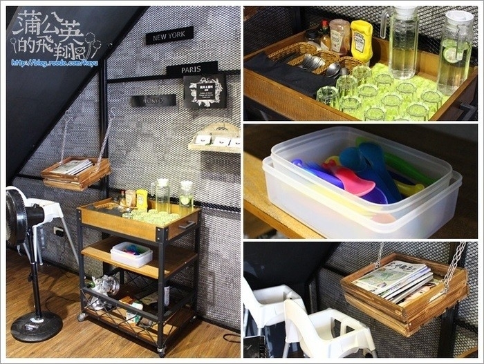 檸檬水、調味料及餐具自取。兒童餐具很可愛,而且數量還不少耶!也備有兒童椅。帶小朋友來這裡不用擔心器具(帶兒童餐椅很麻煩,所以我目前很在意餐廳有無兒童椅。),而且旁邊就有公園和溜滑梯可以遛小孩,小朋友坐不住時,真的會很感激公園就在隔壁啊!!