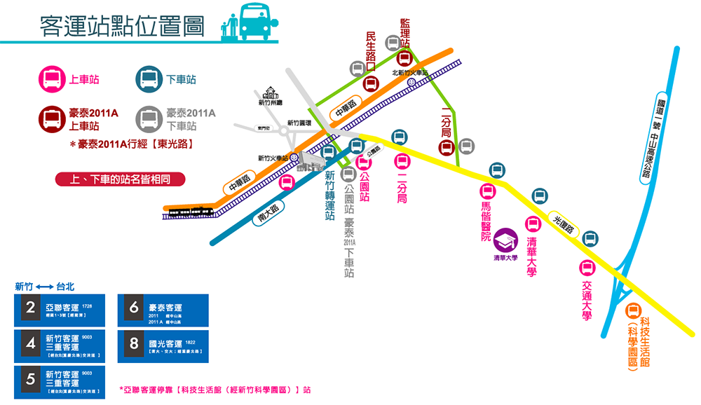目前因為路線調整,有些站點皆不再停靠,所以如果我們要搭乘前務必要留意一下,當然現在於新竹轉運站和台北交九轉運站都有放置「新竹轉運站路線圖」可以參考,交通處網頁也有懶人包可供民眾查詢。