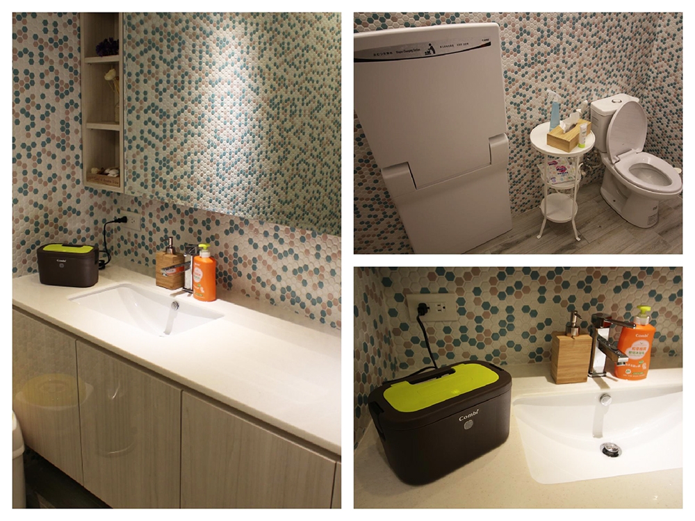 值得一提的是母嬰親善的洗手間,對爸媽來說 Combi House 真的是很貼心,從換尿布的平台到小馬桶,溫溫的濕紙巾到消毒的洗手乳,都應有盡有啦!