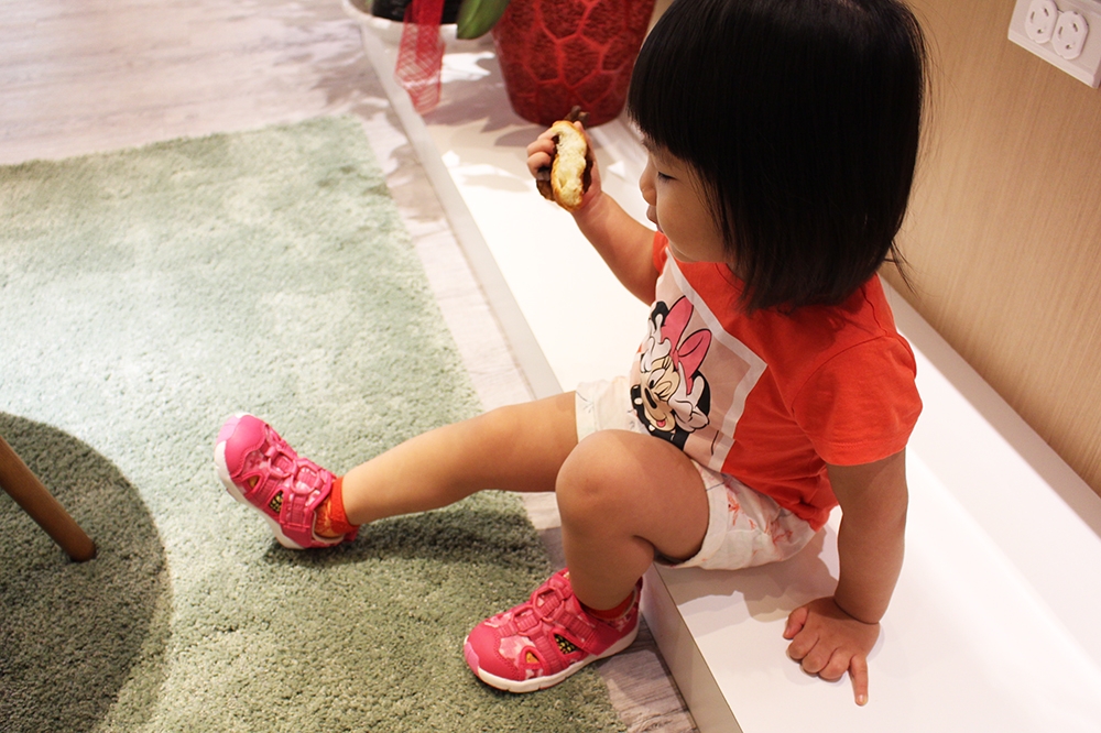 今天也順便來幫小恰咪買了一雙鞋子,現場 Combi 有專業服務人員解說產品,還針對小恰咪的小肉腿做了分析,因為小朋友的腳長得很快,所以在鞋子的挑選上也很重要,不然不小心容易造成不舒服或受傷。