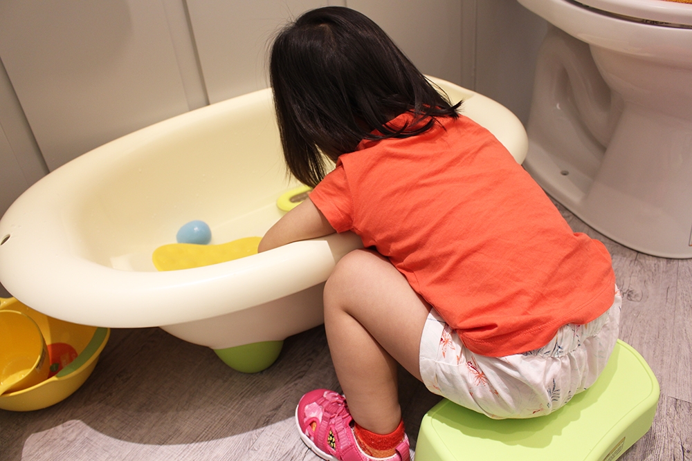 重點是我們家那一隻已經開始玩洗澡玩具了…(還玩超久的)