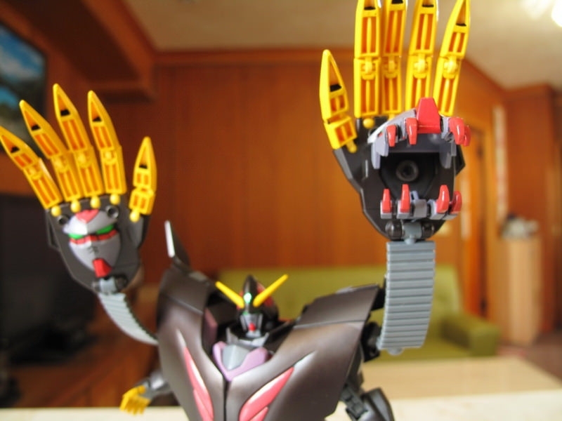 兩側 Big Fist 掌中有臉….那是來自 Devil Gundam ,手中的炮口則是自己貼的
