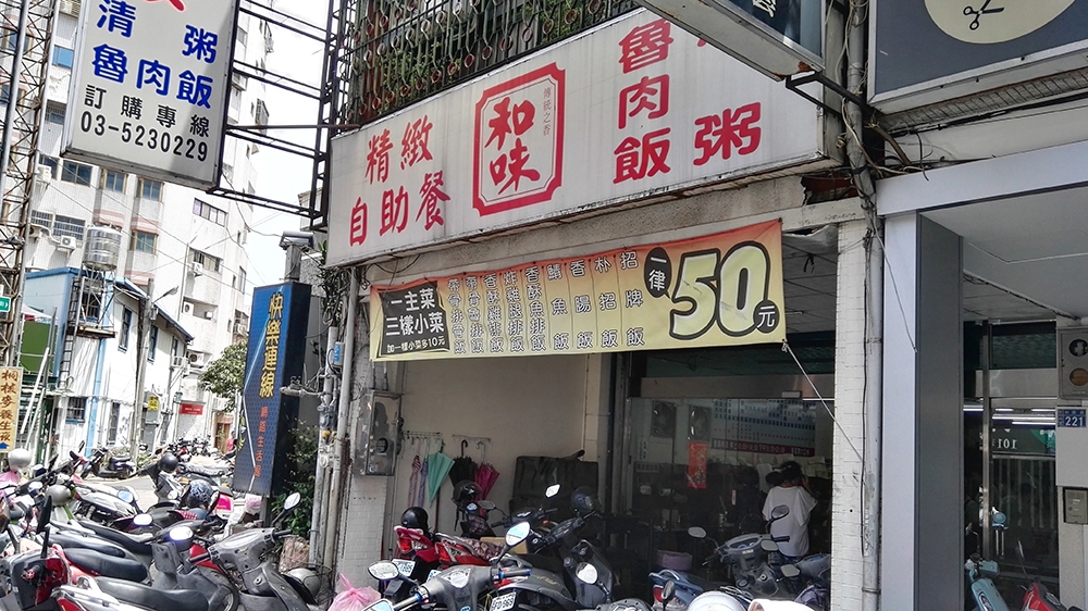 這間自助餐每到中午大概都是機車佔滿出入口,大家都在排隊等著買便當,多半以外帶居多,賣的算是一般的便當還有自助夾菜的服務,林森路附近便當店由於競爭激烈,自從對面林森便當開出了「一個便當50元」的支票之後,這附近每間都開始搞 50 元便當了,如果是以一主菜和三樣配菜來說,和味自助餐 C/P 值算是這邊排名前兩名的,但很多人還是會自己夾菜。