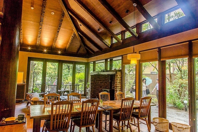 餐廳裡的用餐環境我也很喜歡,尤其是暗黃色的燈,搭配徐徐而入的金黃陽光,加上步道間的綠蔭,氣氛非常好。
