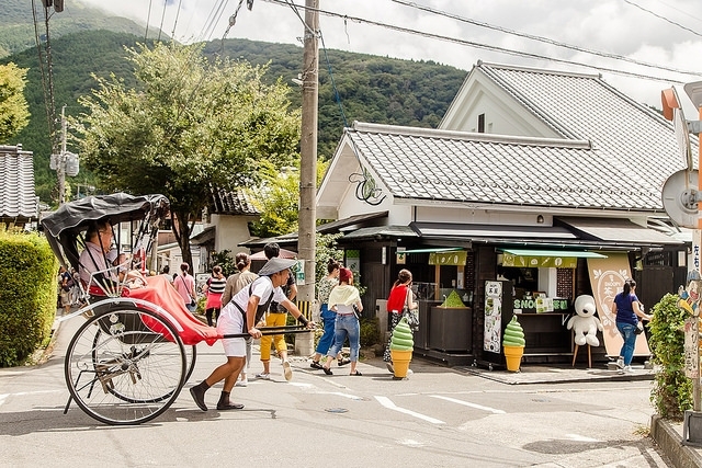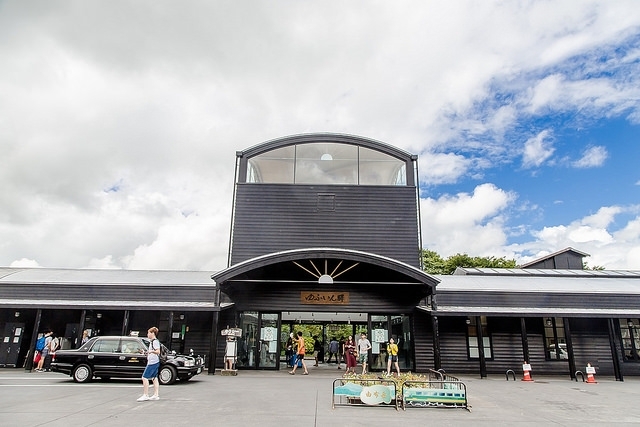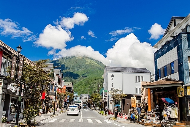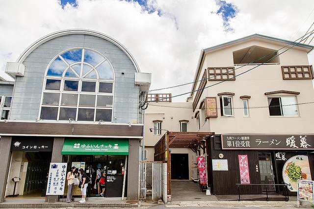 JR車站前一般是逛「湯布院」的起點,從下車的地方開始就非常熱鬧,兩邊商店林立,但這一段的房子會相對比較新、潮一點,如果你只想逛老街,那麼可以選擇搭人力車到前面一點的地方,甚至是湯布院第一景點「金鱗湖」。