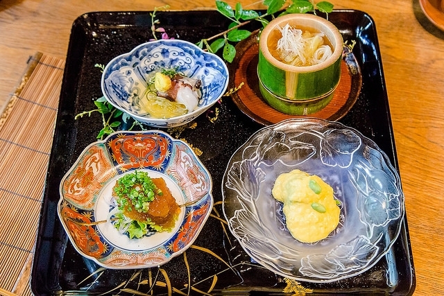 另外也有像這樣非牛肉的定食,以漂亮的漆器裝盛,四樣精彩的小菜,不過我沒吃不知其味就是了。