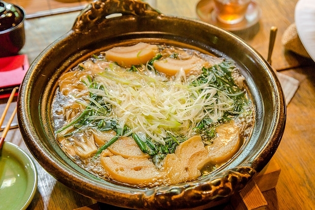 除了那四碟小菜外,還有這一碗以「麩」和菇類煮成的火鍋,看起來很好吃的樣子,畢竟我蠻愛吃「麩」的,尤其是吸了湯汁的。