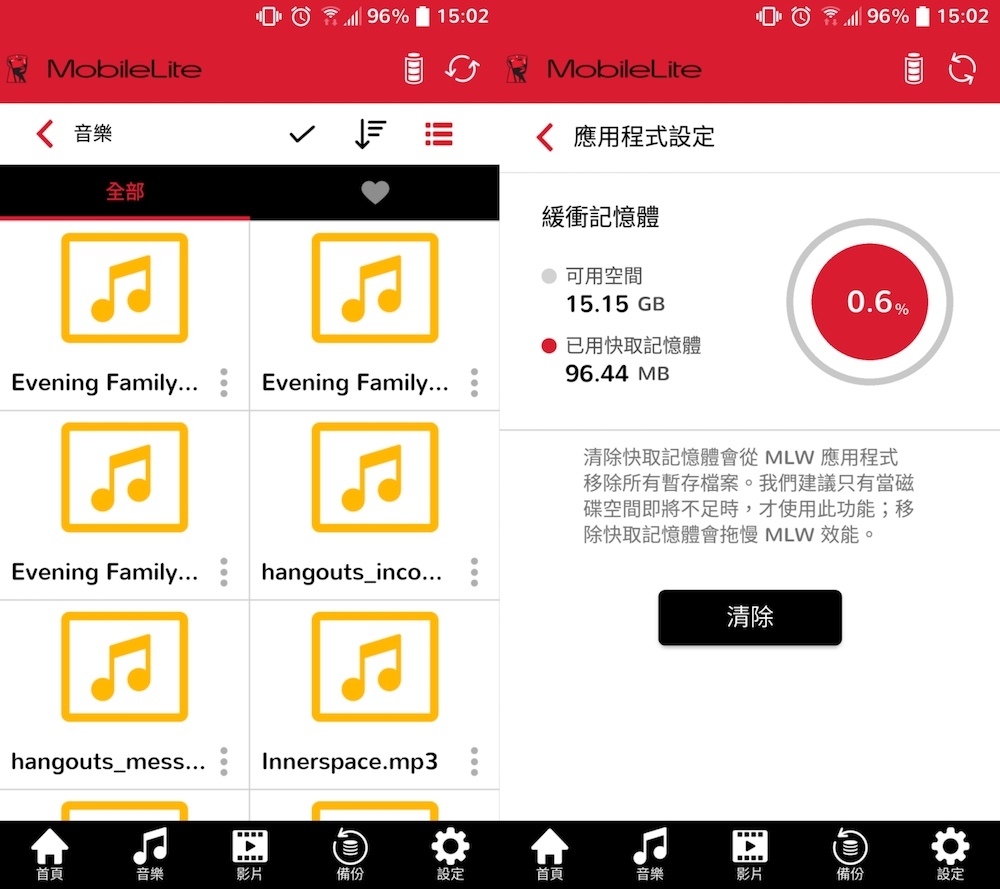 MobileLite Wireless G3 除了能備份照片之外,音樂、影片、甚至是聯絡資訊或行事曆,都可以透過 MobileLite Wireless App 進行備份。此外,MobileLite Wireless G3 還內建 15GB 快取記憶體,建議在外接儲存空間不足時作為緊急儲存空間使用。