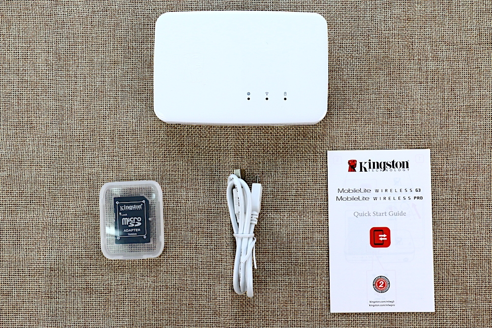接著取出盒裝內的所有配件,除了 MobileLite Wireless G3 本體外,還有附贈一張 micro SD 轉 SD 轉接卡、USB/micro USB 充電線,以及一份使用說明書。