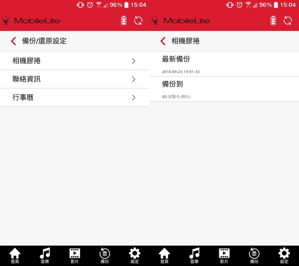 除了簡單好上手的介面外,MobileLite Wireless App 還提供詳細的備份資訊,比方說備份時間、備份位置等,用戶若忘了什麼時候有備份過所有檔案,可以至 MobileLite Wireless App 的備份/還原設定中檢視一下。