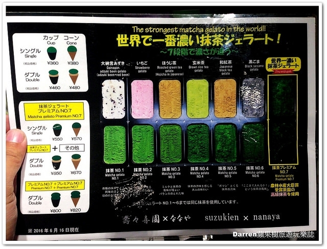 先來看一下menu,抹茶冰淇淋從第一級到第七級,抹茶第五級是義式冰淇淋認為超濃濃度