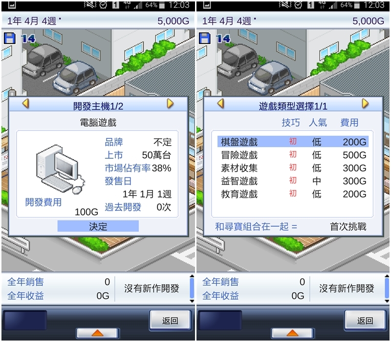 開發遊戲的選項非常多,加上取決於員工的能力,所以最後的成果會怎樣,都有很大的變數,這也是遊戲好玩的原因!這次要開發的遊戲到底是要朝哪個方向呢?