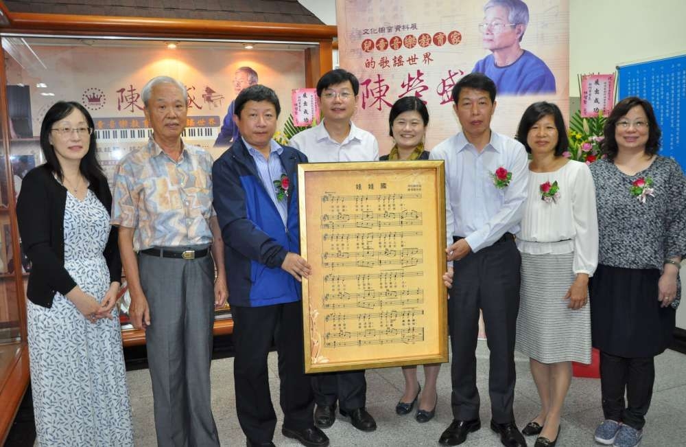 新竹市文化局三樓文化櫥窗「兒童音樂教育家─陳榮盛資料展」,即日起展出陳榮盛老師生平事蹟、自編兒童教材、獎盃、獎牌、照片等文物,開幕茶會今(12)日上午舉行,包括陳老師的三位子女及數十位親友皆到場,一起追念老師執著於音樂的精神,場面溫馨感人。市長林智堅感謝陳榮盛老師對兒童音樂的付出和努力,對他作育英才的精神也推崇欽佩。
