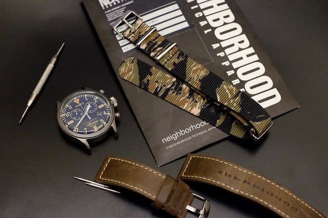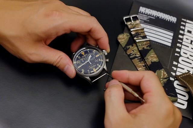 NEIGHBORHOOD 過去也曾推出 NATO 尼龍錶帶,今年則是以虎紋迷彩的軍事風格亮相。