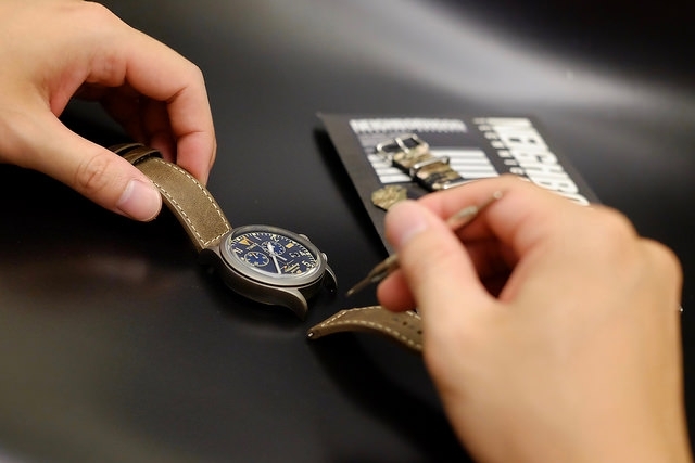 這款 TIMES 復古飛行錶原本是搭配 Red Wing 皮質錶帶,透過拆錶帶的耳叉工具就能自行 DIY 拆除,比挖耳屎還容易。