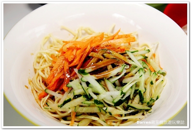 上面有大量的小黃瓜及紅蘿蔔絲,淋上店家自製的醬料然後拌一拌,麵條本身有著麵香好吃沒話說