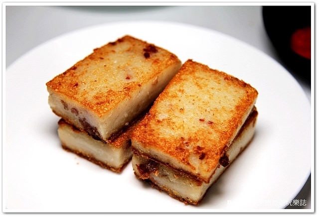 港式蘿蔔糕 NT:30,蘿蔔糕表面煎到呈現金黃色,內餡吃起來有培根顆粒口感,不用沾醬就不錯吃囉