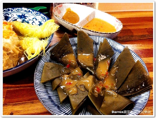 店家招待一盤昆布捲沾點芥末醬吃起來脆脆的很下酒,好想點酒類可惜我開車不能喝酒只好PASS囉
