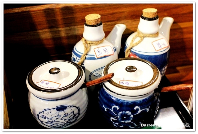 桌面上有調味料比較特別的是他們家的辣椒有大辣及小辣,推薦一定要加看看吃起來蠻辣的又香很讚