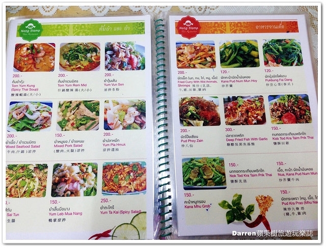 泰式永順小吃店MENU,前幾頁有中文搭配泰文及英文,也有圖片可以稍微參考一下多少可以看得懂