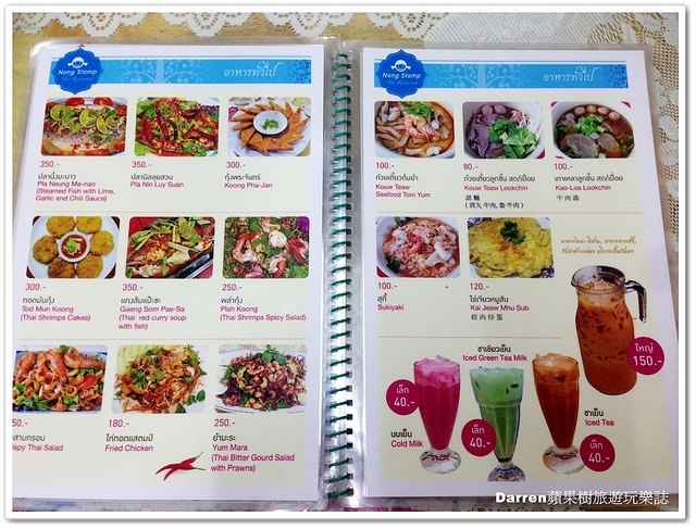 後面就是單點為主,再往後面幾頁的MENU就剩英文和泰文加上圖片,如果不知道就問店員會說中文可以溝通