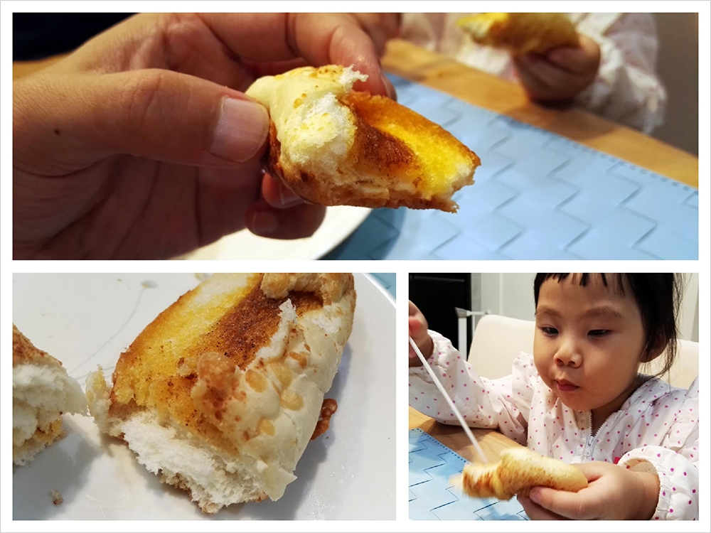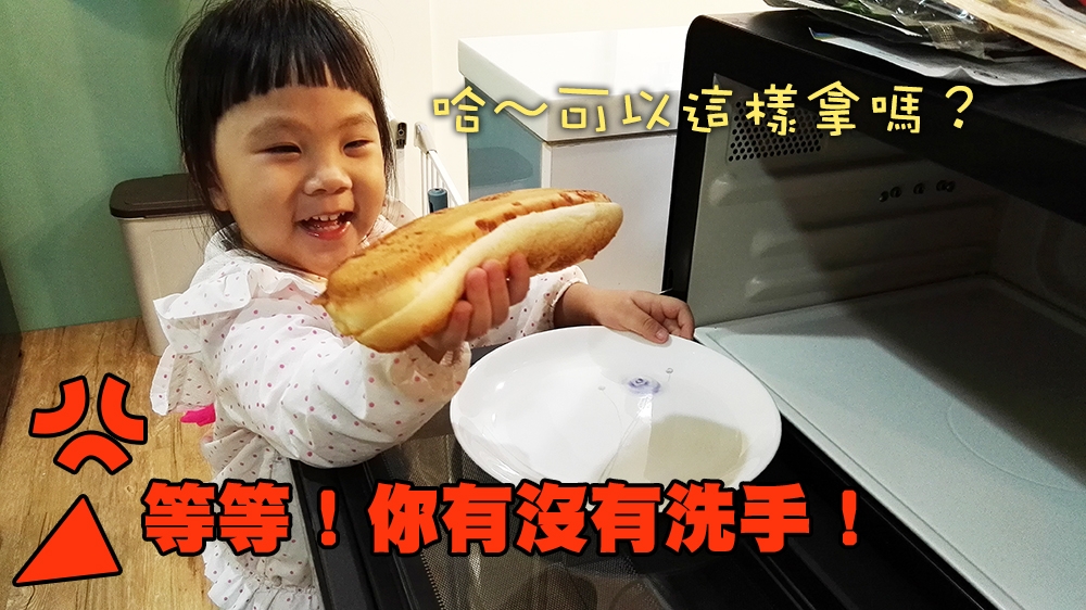 有的時候當爸媽的可以多讓孩子嘗試些東西,其實他們很多事情都想要自己來,做一些大人也在做的事情,我們更可以機會教育一下,趁這個機會讓她體驗熱麵包的樂趣。