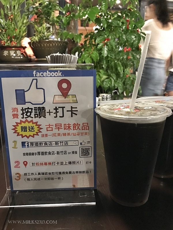 臉書打卡按讚,就送好喝的古早味飲品喔(限一支手機一杯)我們是選仙草甘茶,還蠻清涼退火的,☞活動結束時間請依照店家公告,【以上內容純屬個人食後心得,僅供參考3Q】
