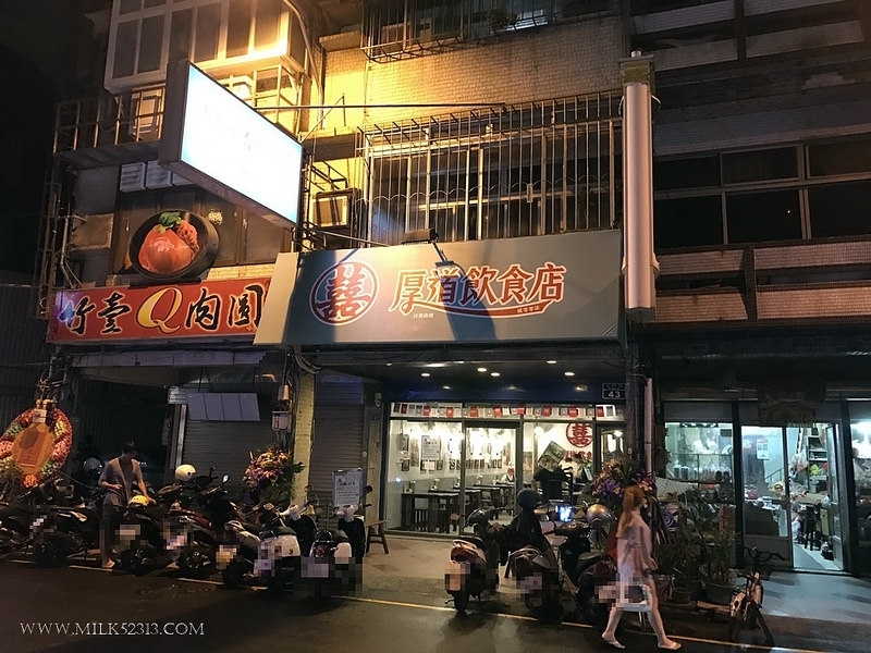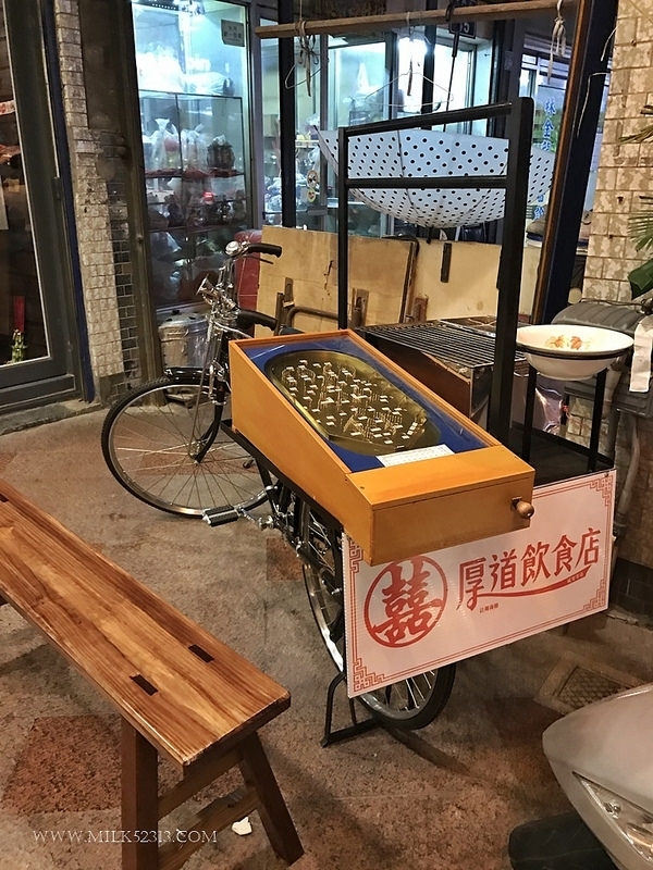 厚道飲食店-新竹店位於城隍廟附近的北門街上,門口擺放一台充滿古早味的彈珠台,似乎是真的可以玩…