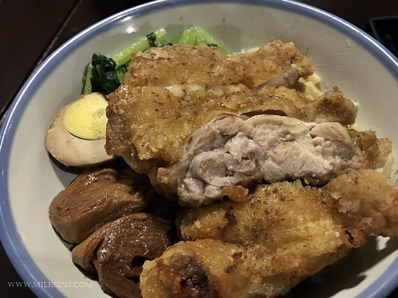 搭配筍乾、青菜、滷麵筋、滷蛋等配菜,大碗公飯,整體份量我覺得蠻夠的哦,雞腿外皮炸的很香酥脆,肉嫩嫩還保有肉汁,兩個口味比較起來,我們都比較愛雞腿飯,喜歡炸雞腿的朋友可以試試看合不合口味!