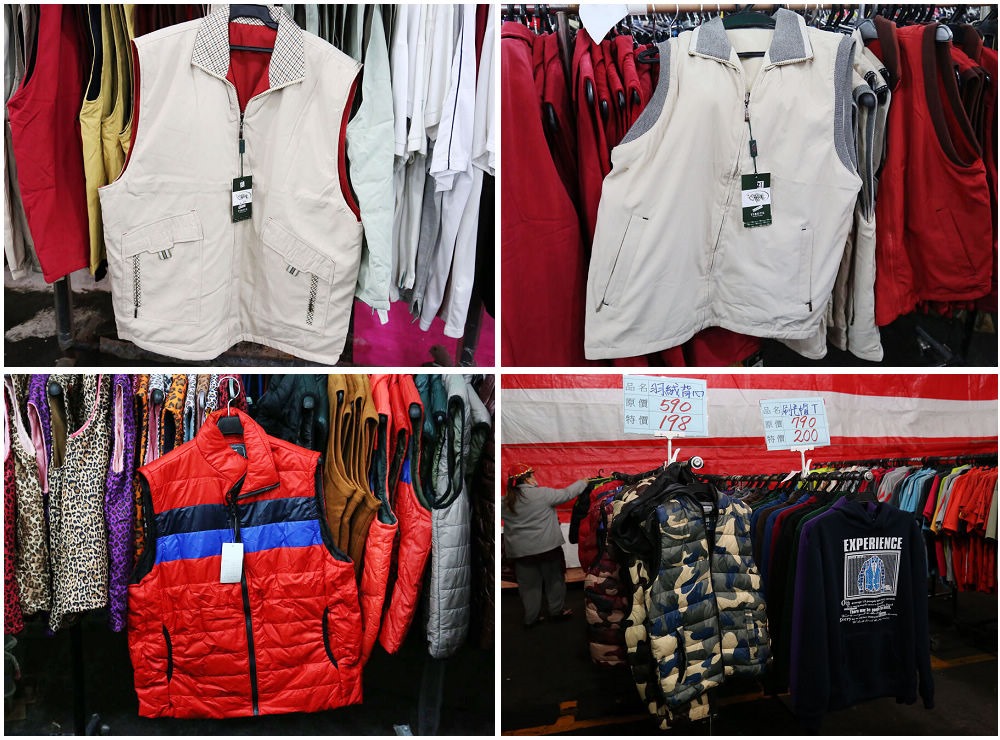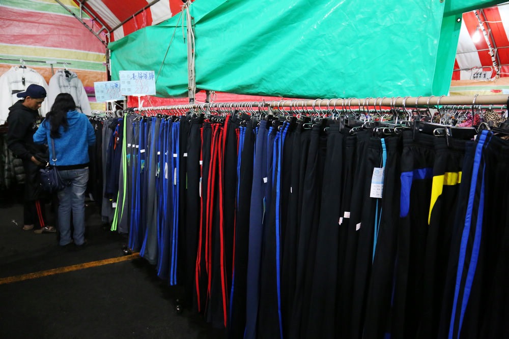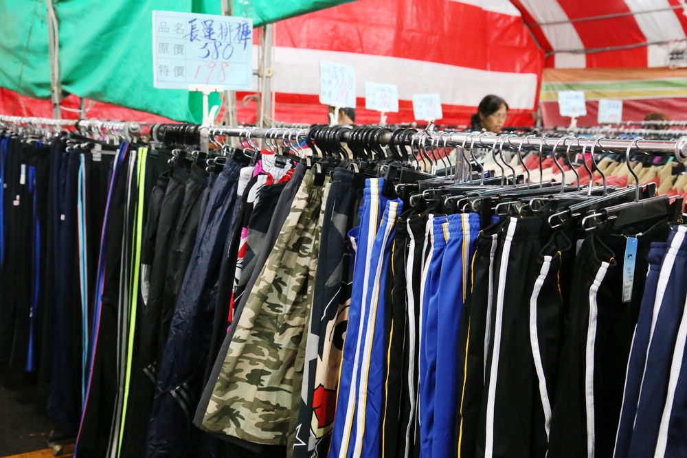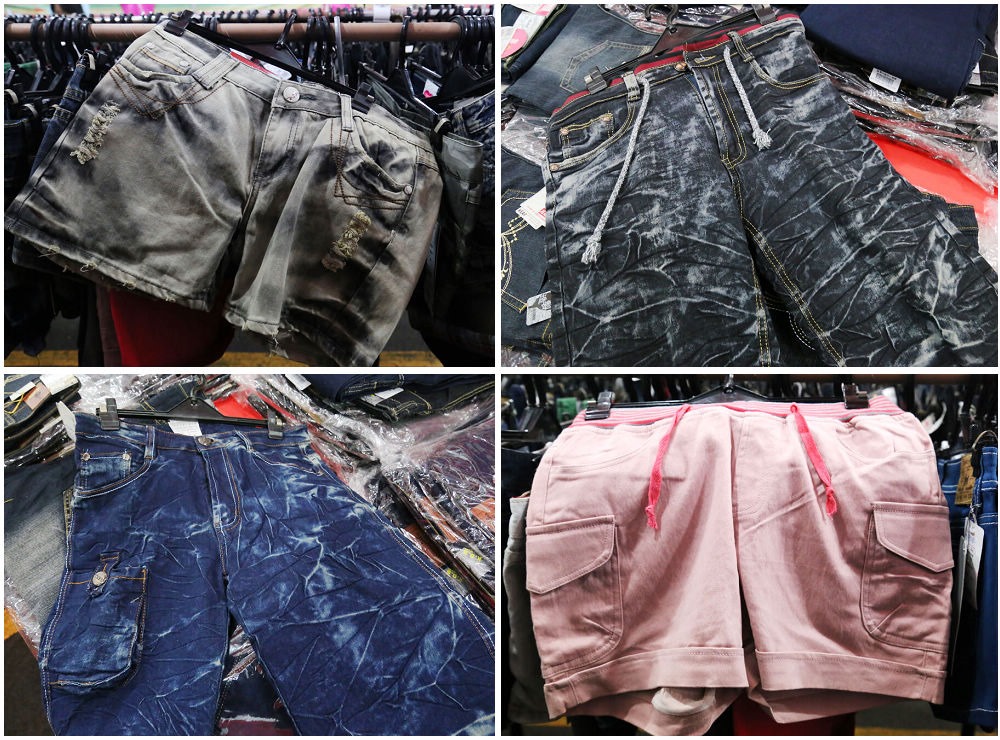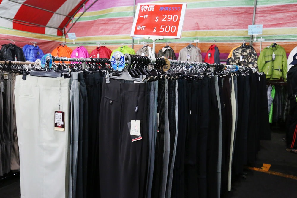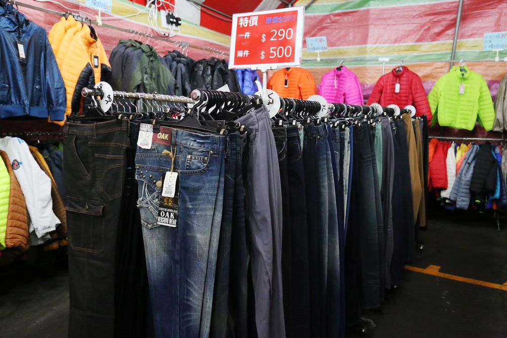 牛仔長褲的展售同樣是大宗,牛仔褲有許多是台灣廠商卡那比這個牌子,售價依標價,自399-590元都有,造型、款式多,各式褲管、褲子後的電繡讓人看得目不暇給,牛仔褲一定要試穿,可多利用試衣間。