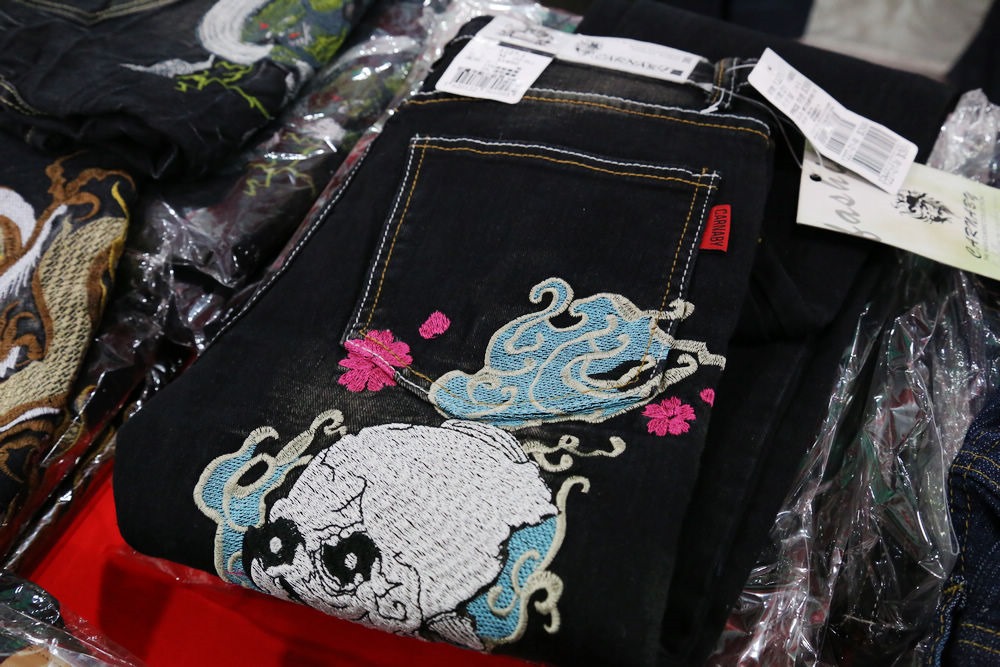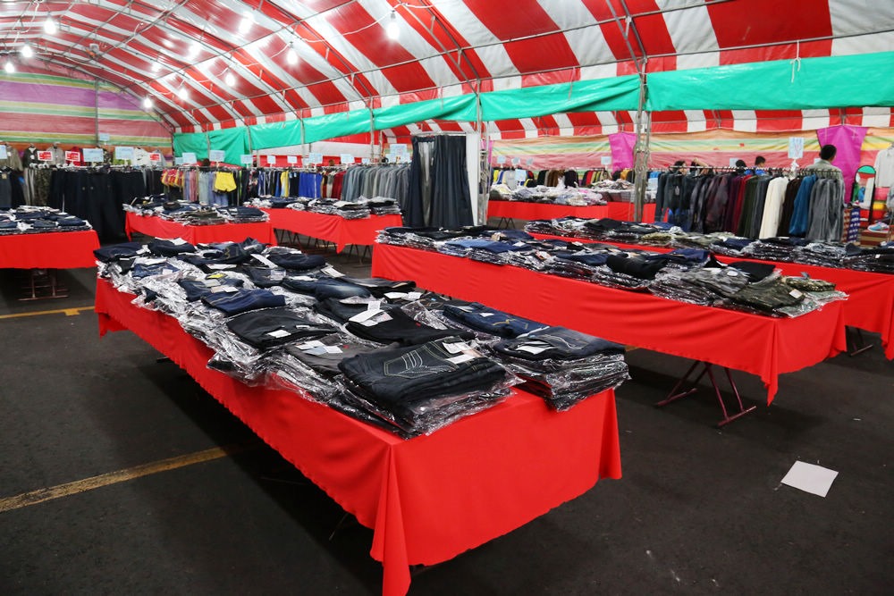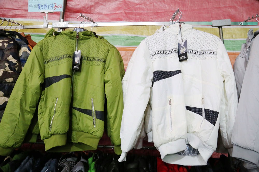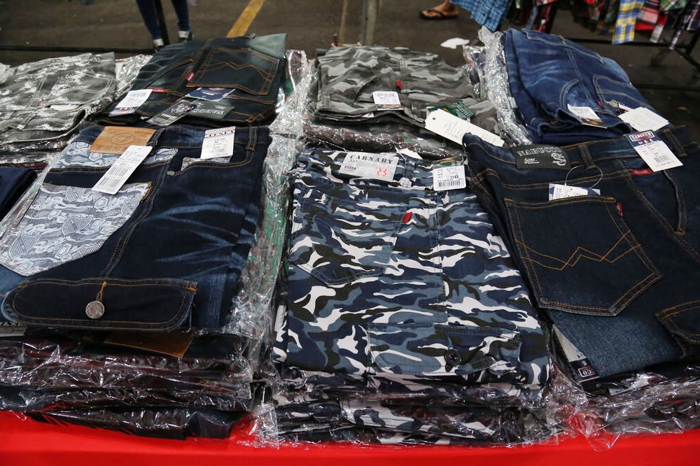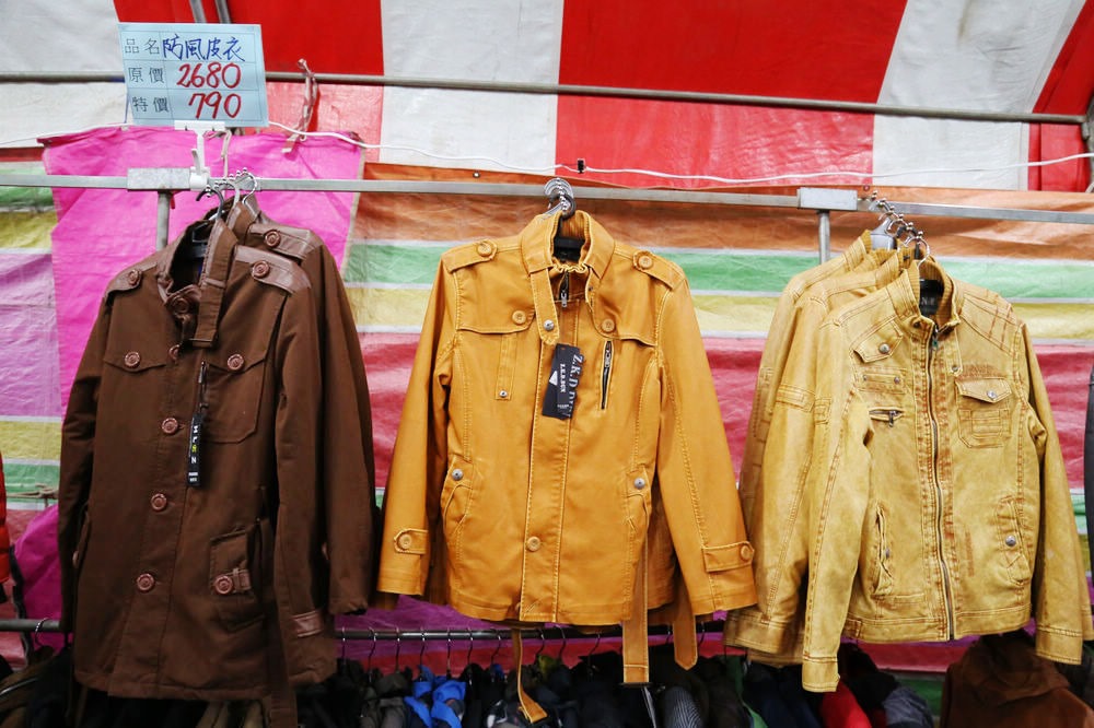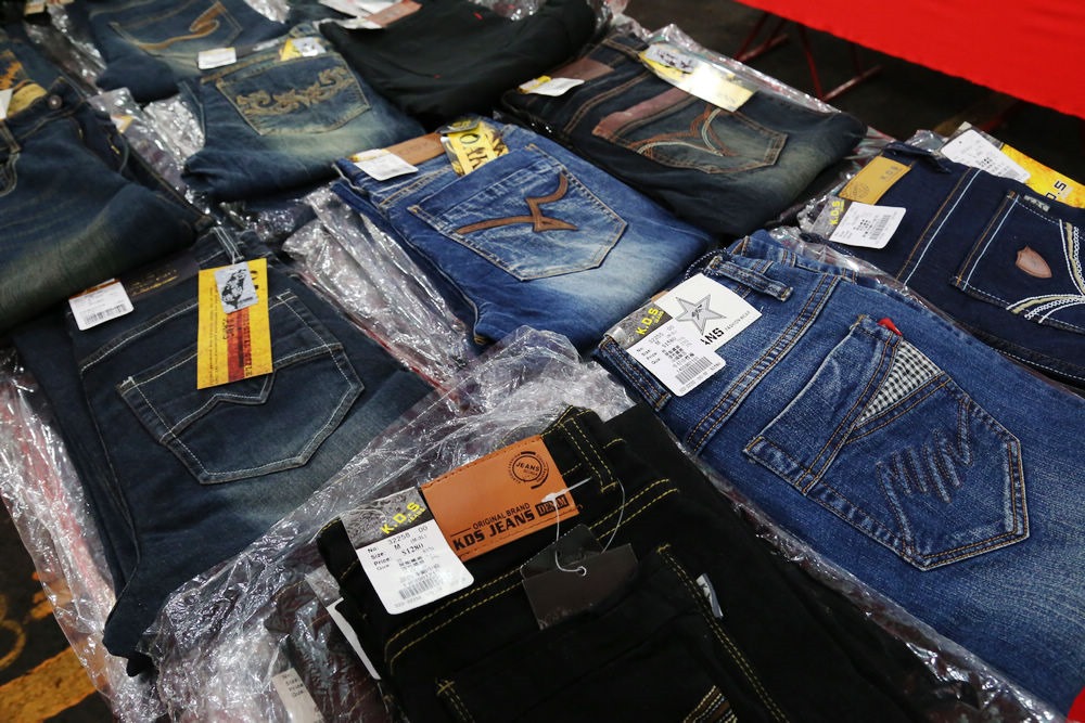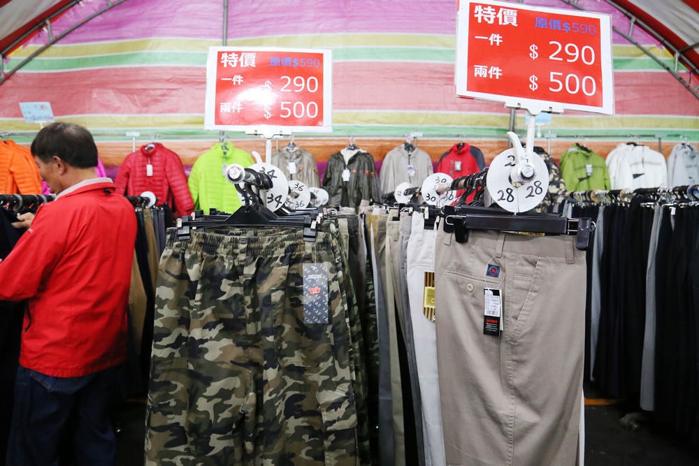 牛仔長褲的展售同樣是大宗,牛仔褲有許多是台灣廠商卡那比這個牌子,售價依標價,自399-590元都有,造型、款式多,各式褲管、褲子後的電繡讓人看得目不暇給,牛仔褲一定要試穿,可多利用試衣間。