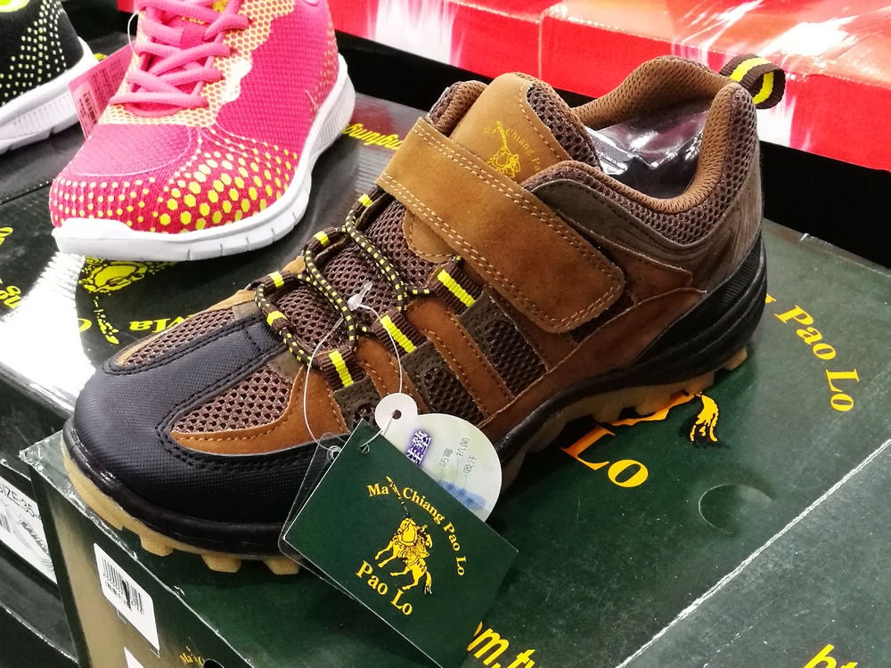 ma chiang pao lo 品牌的註冊商標都是關公騎著馬的圖案,展售的鞋款不需要綁鞋帶,內置防臭鞋墊,網布也可幫助透氣,一雙 490 元。