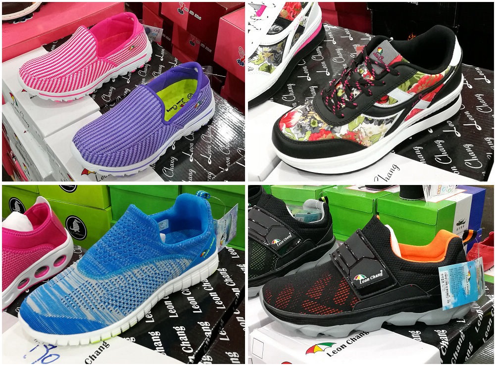 黑白色鞋盒是 Leon Chang(LC雨傘)品牌,這幾雙鞋都還是很新款,在 momo 購物網有販售,左上的羽量網布輕便鞋有貼心的快穿拉孔設計,穿脫都方便,比 momo 購物便宜 90 元,右上的美的邂逅花系列美體鞋比 momo 購物便宜 80 元,具增高5公分設計,可拉長比例,左下亮彩立體編織透氣Q彈輕量健走休閒鞋以透氣網布設計,讓鞋內熱氣在行走時自然排出不悶熱,右下的超輕方便簡易休閒運動鞋男款以多黏帶設計服貼好走比 momo 購物便宜 90 元。