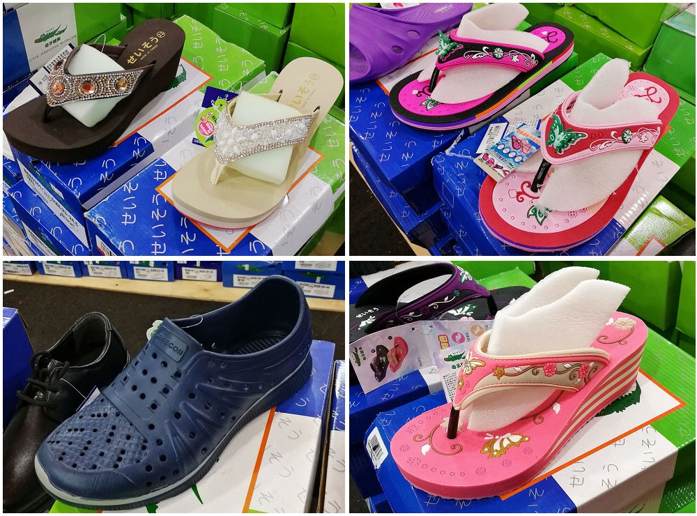 左上的減壓舒適氣墊娃娃鞋比東森購物便宜 67 元,右下的草間大師風格厚底帆布鞋搭配大大的顯眼蝴蝶結售 390 元,比網拍便宜100元以上,可能因為鞋子大多算是新款,特價幅度有限,但至少看的到摸的到還可試穿,可接受了,如果買越多就省越多。