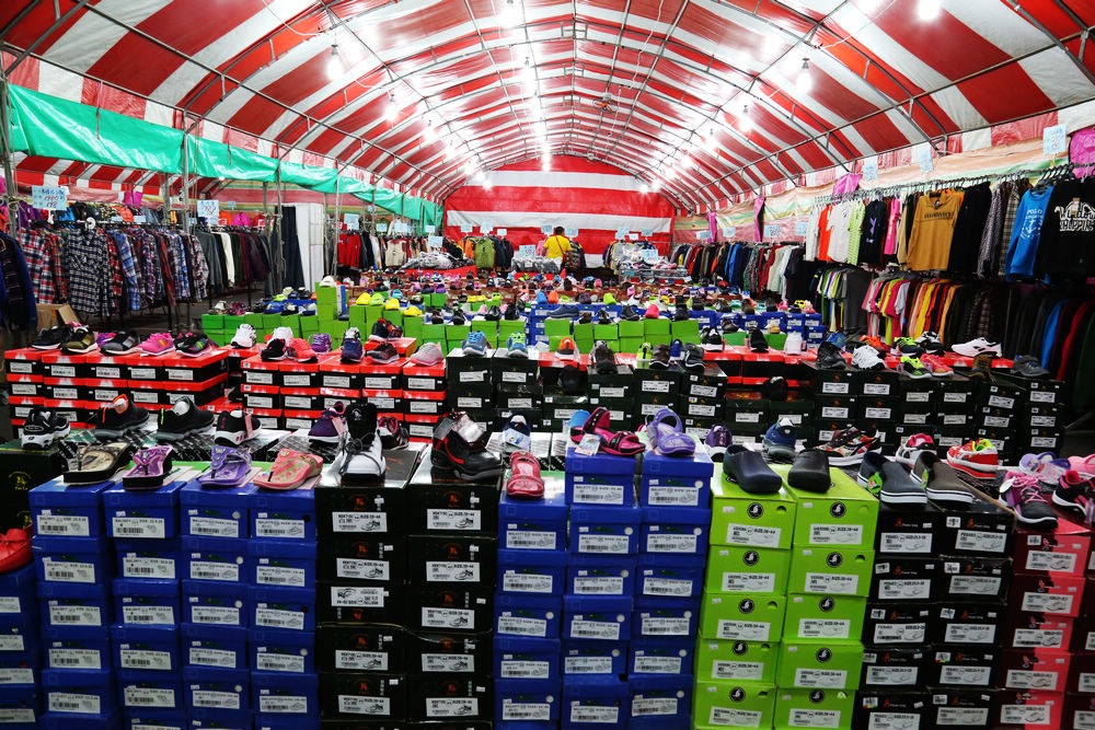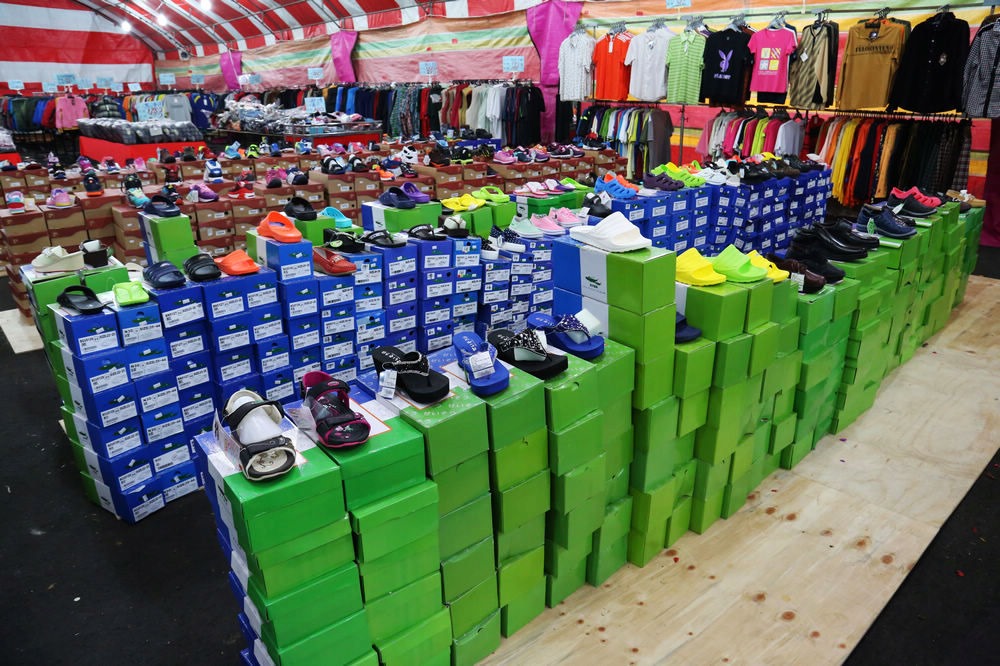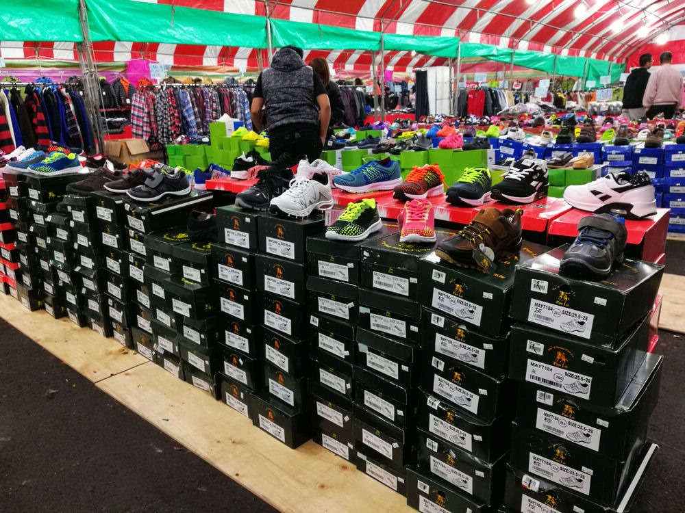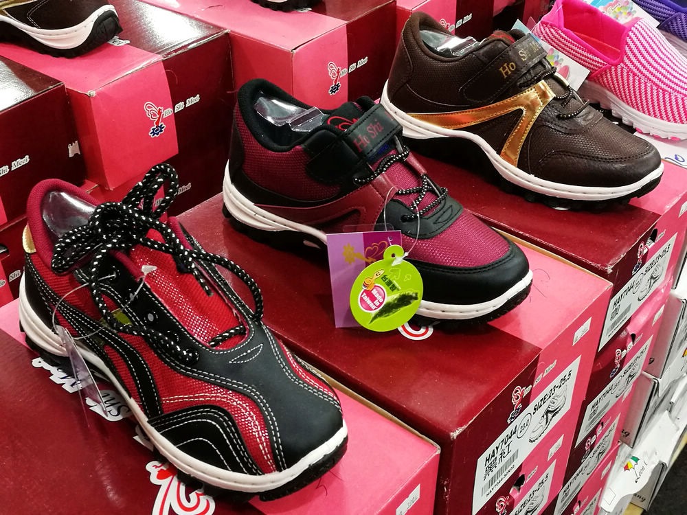 因為才第一天,店家陸續擺放貨品,這幾雙鞋子是剛從箱子拿出來的,共有十種樣式顏色,一雙只要 200元。