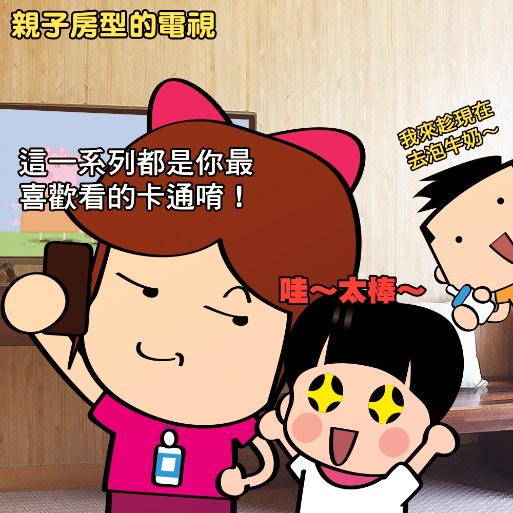 我如果是開民宿或飯店的(如果是就好了),電視開啟畫面就一定是我們家飯店的照片啊!接著每間房間一定有不同的電視設定,讓房客都可以看到想看的內容、適合看的內容,如果有特殊需求,搞不好還可以跟房客收費做協助調整(連賺錢的方式我都想好了…)