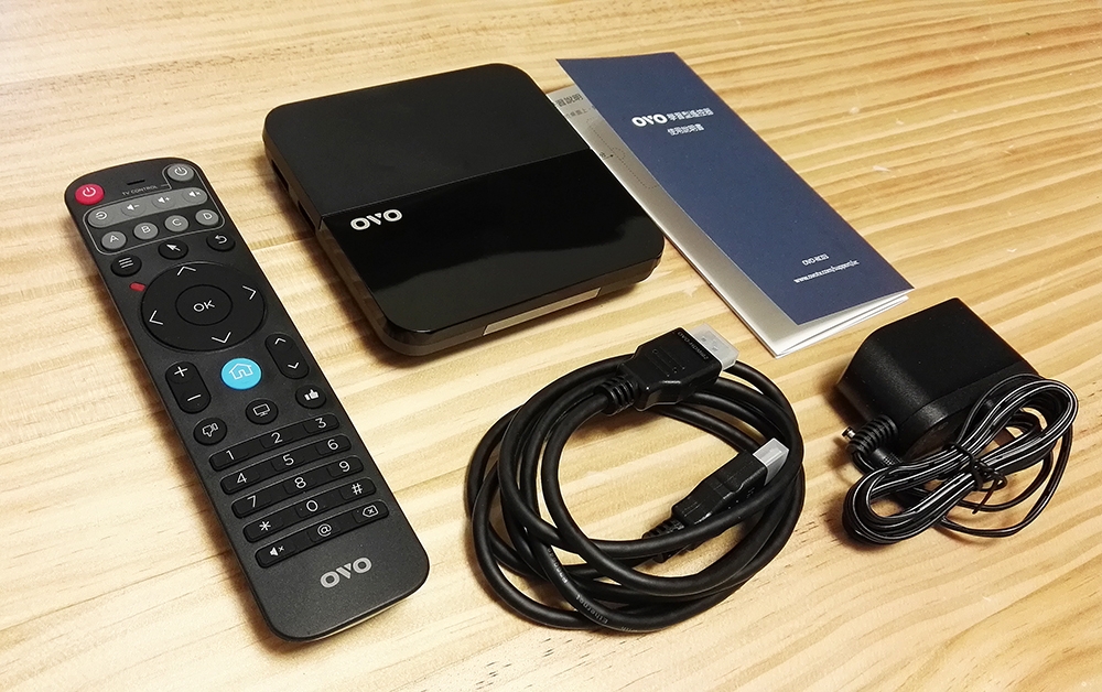 內包裝除了 OVO B05 機上盒之外,還包括了遙控器、電源變壓器、HDMI 線以及使用說明書。