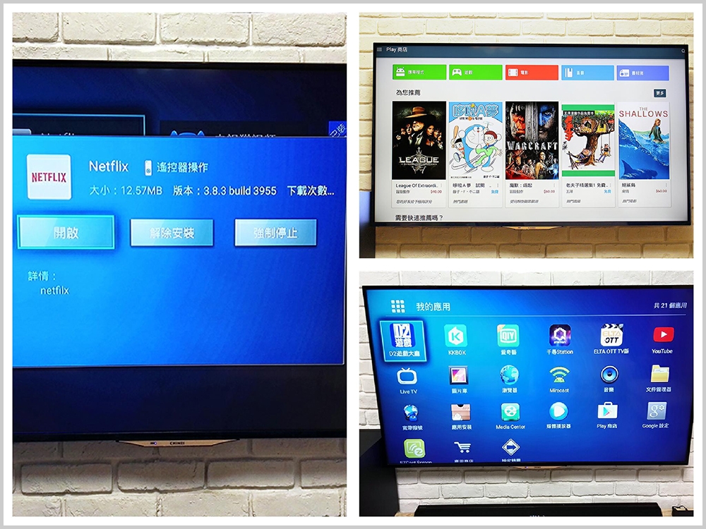 這也包含了原本就有的 ELTA OTT、愛奇藝、KKBOX、D2 遊戲…等,還有將上架的 LiTV 線上影視,OVO B5 同時也支援了 Google Play 和 APK 安裝,提供很好的軟體擴充性,除了可以用電視看電影之外,我們還可以看正夯的 Netflix 啊!另外行動裝置投射到電視的 Miracast 也沒有問題囉!