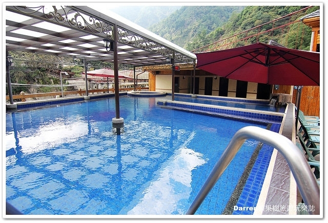 來到露天溫泉池必需穿著泳衣泳帽,如果想要來泡的朋友可要先帶好,溫泉池的周邊視野景觀很棒
