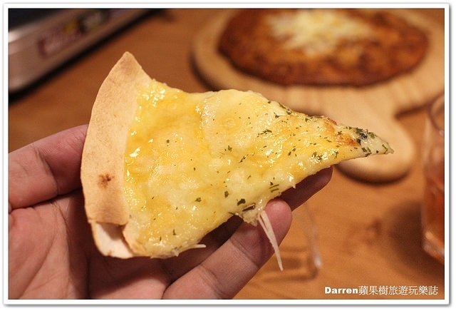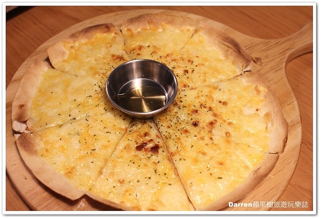 莫札瑞拉起司披薩 NT:160,這披薩雖然屬於薄皮,餅皮略Q單吃口味偏鹹香加上蜂蜜鹹甜好吃